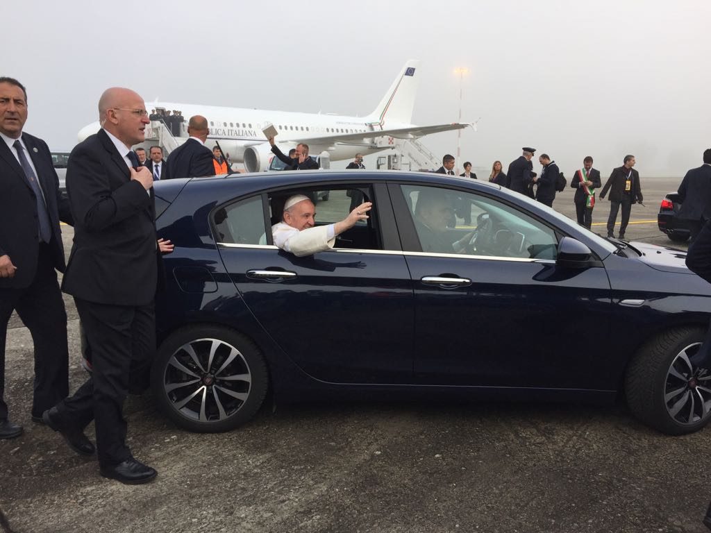Papa Francesco è atterrato all'aeroporto di Milano Linate, in lieve ritardo sulla tabella di marcia anche a causa di una leggera foschia. Ad attenderlo, oltre alle istituzioni cittadine e lombarde (il sindaco Sala, il prefetto Lamorgese e il governatore Maroni), anche alcuni disabili che il Pontefice ha salutato con calore, prima di salire in auto per iniziare la sua prima visita a Milano e alla Diocesi ambrosiana. Prima tappa alle "case bianche" di via Salomone, dove la gente lo attende da questa notte.