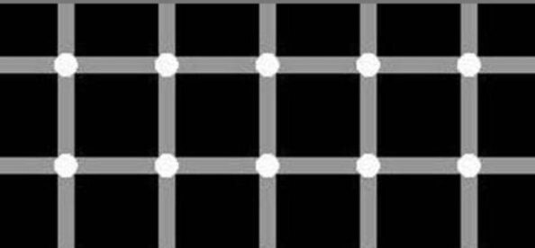 Osservando questo disegno si ha come l'impressione che ci siano dei puntini neri. Addirittura muovendo gli occhi, per cercare di mettere a fuoco meglio, si avrà l'illusione che i punti cambino colore, appunto dal bianco al nero e viceversa. In realtà è lo sfondo nero a trarre in inganno gli occhi: i puntini sono tutti bianchi,