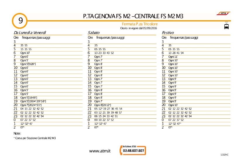Tutte le informazioni utili per turisti e cittadini sulla linea 9 dei tram di Milano, che mette in collegamento Porta Genova e la Stazione Centrale, con orari e frequenza delle corse per ciascuna delle 26 fermate di cui è composto.
