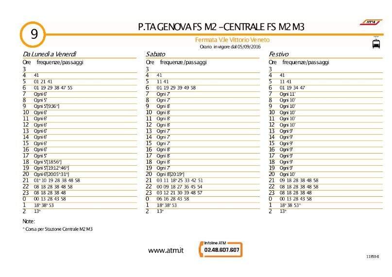 Tutte le informazioni utili per turisti e cittadini sulla linea 9 dei tram di Milano, che mette in collegamento Porta Genova e la Stazione Centrale, con orari e frequenza delle corse per ciascuna delle 26 fermate di cui è composto.