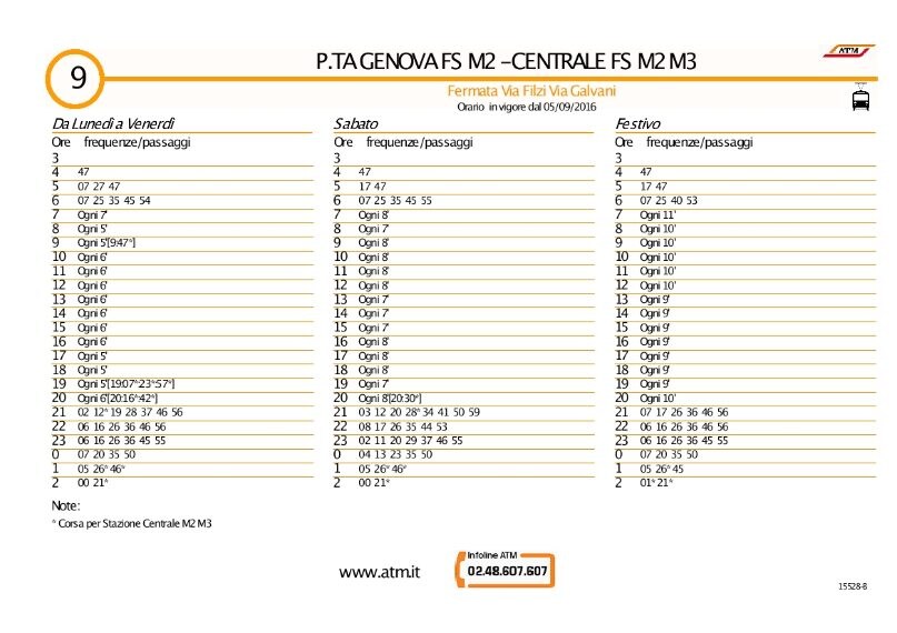 Tutte le informazioni utili per turisti e cittadini sulla linea 9 dei tram di Milano, che mette in collegamento Porta Genova e la Stazione Centrale, con orari e frequenza delle corse per ciascuna delle 26 fermate di cui è composto.