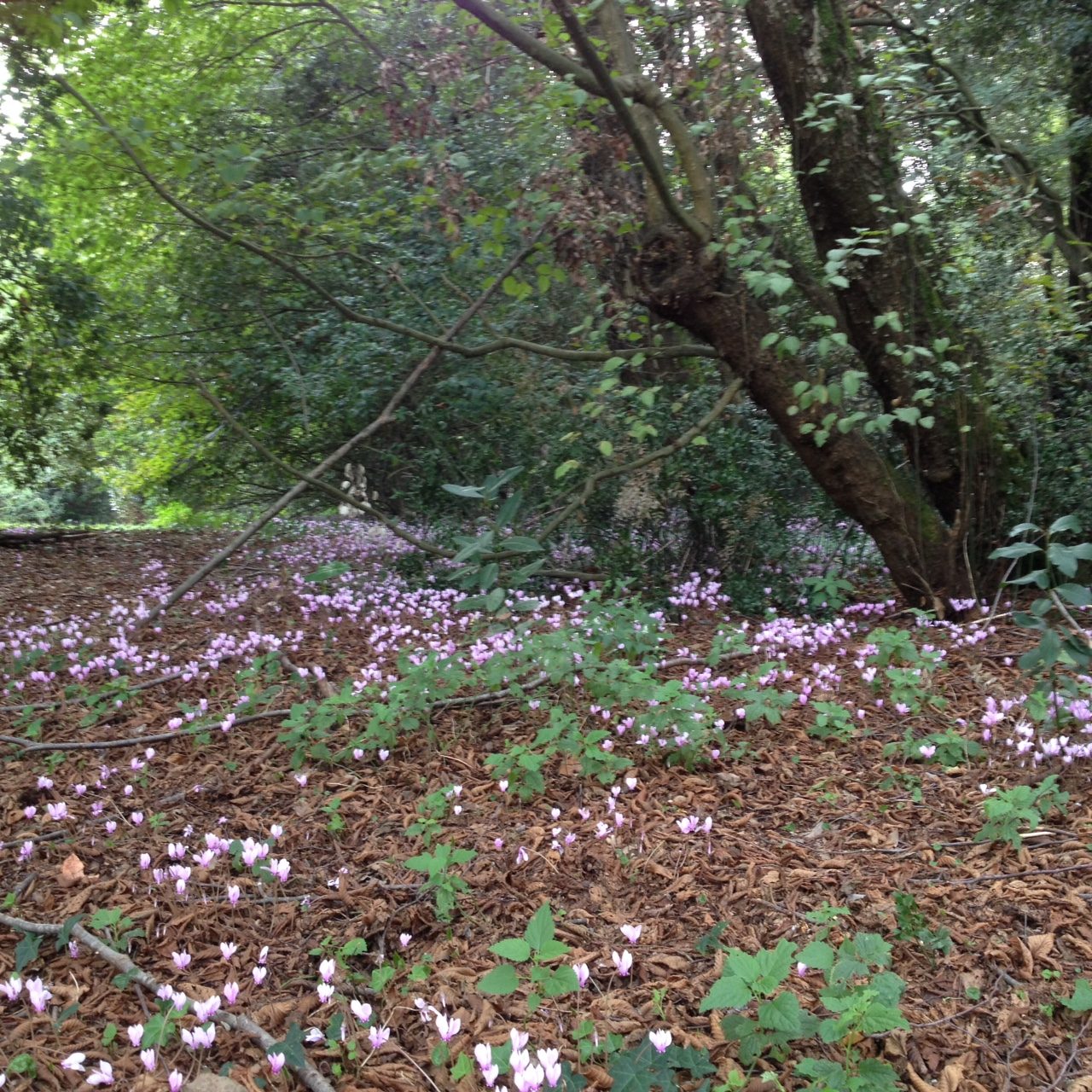 Il ciclamino selvatico fiorisce in tarda estate e le sue fioritura continuano fino all’inverno inoltrato. Da qualche giorno il bosco di Capodimonte, specie nelle parti ombreggiate dalle querce centenarie, si è colorato di un rosa pallido tendente al lilla, grazie a una splendida fioritura di questa specie. Un motivo in più dunque per passeggiare lungo i viali del parco per ammirare questi delicatissimi fiori rosati che sono una specie protetta e quindi non possono essere colti.