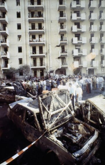 Il 19 luglio 1992, davanti al civico 21 in via Mariano D'Amelio, una 126 carica di esplosivo azionato a distanza, saltò in aria causando una strage. Morirono nell'attentato organizzato da Cosa nostra, il giudice antimafia Paolo Borsellino e gli agenti della sua scorta: Emanuela Loi, Agostino Catalano, Vincenzo Li Muli, Walter Eddie Cosina e Claudio Traina.