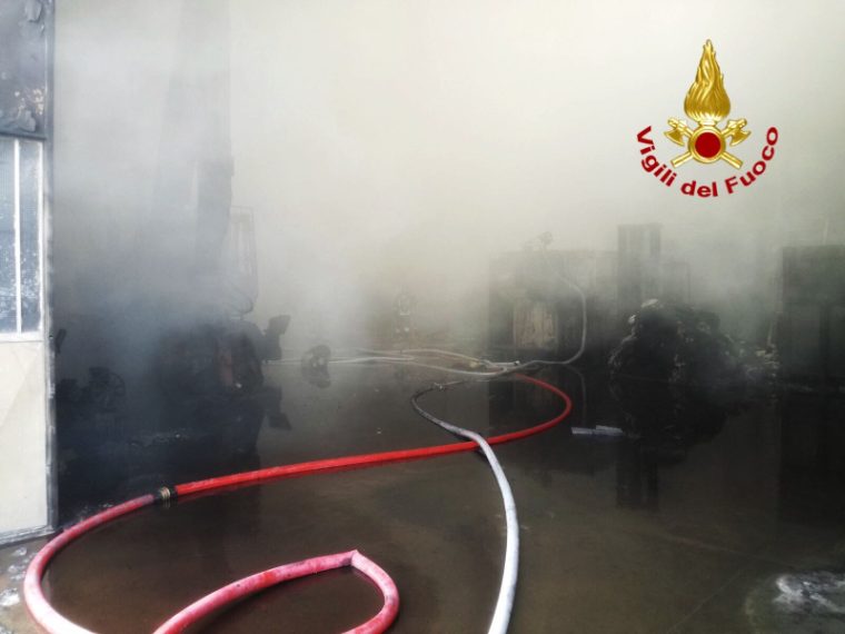 Cinisello Balsamo, incendio in un deposito di rifiuti: vigili del fuoco al lavoro