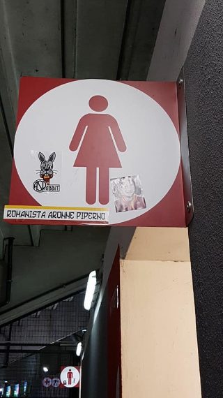 Gli ultras laziali hanno attaccato alcuni adesivi antisemiti sulle vetrate della Curva Sud, il settore dello Stadio Olimpico riservato solitamente ai tifosi romanisti. Un fotomontaggio di Anna Frank con la maglietta della Roma, "Romanista ebreo", "Romanista frocio", "Aronne Piperno romanista", le frasi shock lasciate dai laziali.
