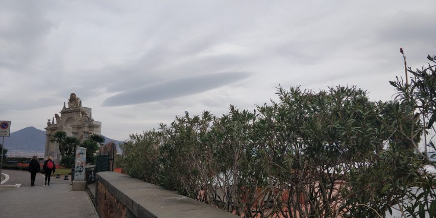 Capita che con il vento forte si formino delle strane nuvole affusolate in cielo. È accaduto a Napoli nel pomeriggio di lunedì 8: una gigantesca nuvola di forma ellittica (ovale) ben visibile 'accanto' al Vesuvio e sul golfo. Tanti i turisti che si sono fermati su via Caracciolo per un click con lo smartphone.