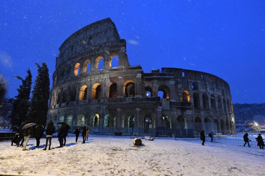 Roma imbiancata, i monumenti ricoperti di neve sono uno spettacolo