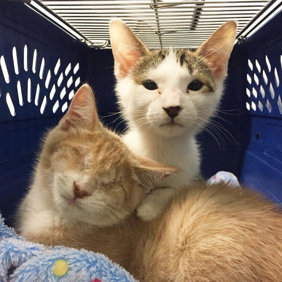 Due gattini sono stati prelevati da un rifugio locale in Virginia e ospitati in casa da una donna: entrambi sono nati con anomalie oculari congenite. In particolare il gattino di nome Bop, è stato addirittura trovato con gli occhi rimossi, a causa di una malformazione chiamata microftalmia: gli occhi risultano essere molto più piccoli creando enormi difficoltà alla vista.