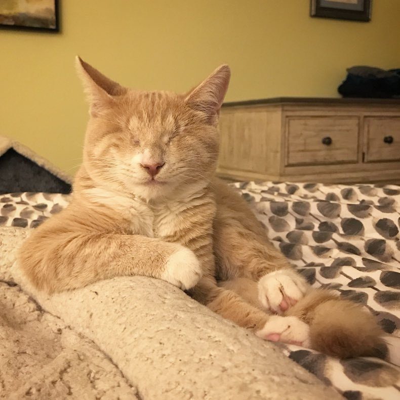 Due gattini sono stati prelevati da un rifugio locale in Virginia e ospitati in casa da una donna: entrambi sono nati con anomalie oculari congenite. In particolare il gattino di nome Bop, è stato addirittura trovato con gli occhi rimossi, a causa di una malformazione chiamata microftalmia: gli occhi risultano essere molto più piccoli creando enormi difficoltà alla vista.