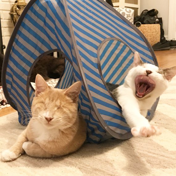 Due gattini sono stati prelevati da un rifugio locale in Virginia e ospitati in casa da una donna: entrambi sono nati con anomalie oculari congenite. In particolare il gattino di nome Bop, è stato addirittura trovato con gli occhi rimossi, a causa di una malformazione chiamata microftalmia: gli occhi risultano essere molto più piccoli creando enormi difficoltà alla vista.