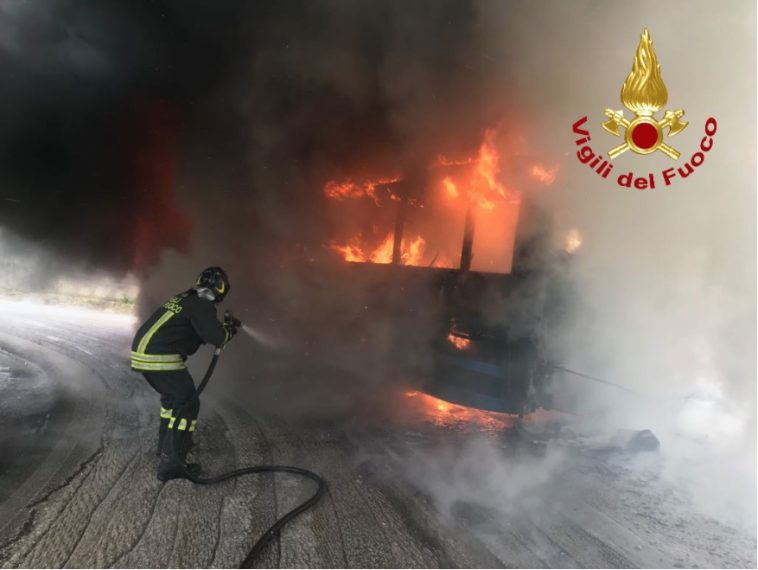 Pullman prende fuoco sull’A29, paura a bordo: passeggeri salvi per miracolo, traffico in tilt