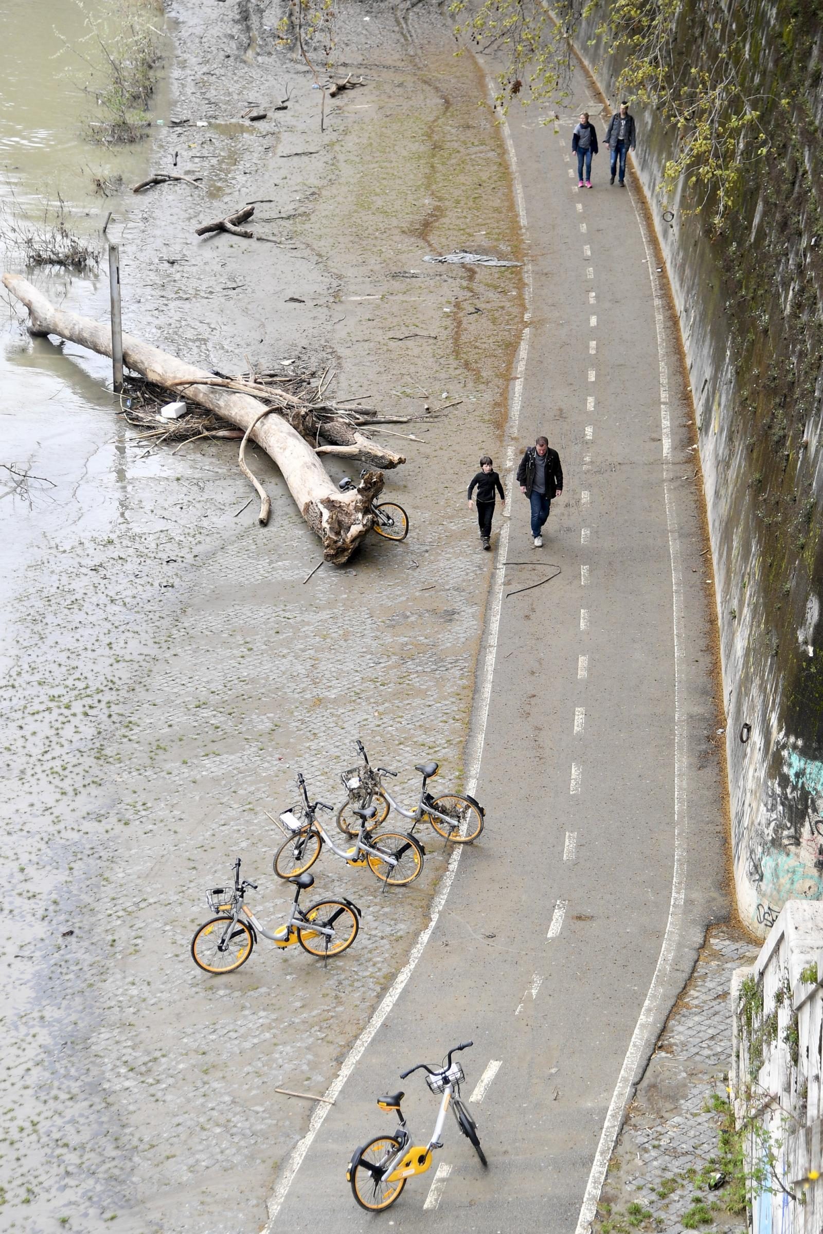 Le banchine del Tevere sono completamente invase dal fango dopo la piena dei giorni scorsi. Per il momento ancora non sono state ripulite. Ad oggi è praticamente impossibile passeggiare o andare in biciletta.