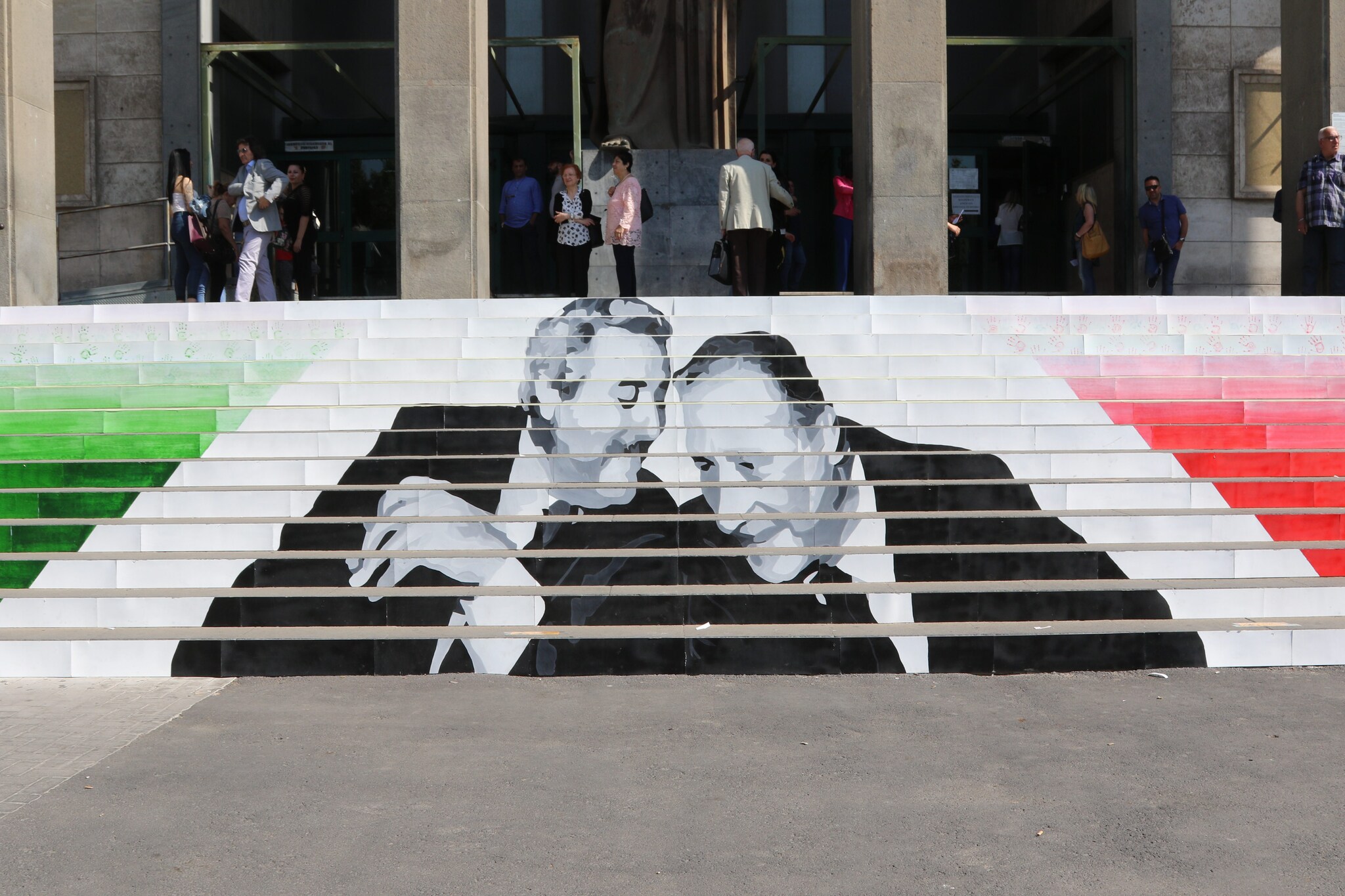 Sono stati i ragazzi del Liceo artistico “Emilio Greco” di Catania a raffigurare, sulla scalinata del Tribunale di Catania, Falcone e Borsellino in occasione del 23 maggio. Un’immagine che rappresenta non solo la lotta alla mafia ma anche il lavoro della Procura di Catania che, nell'ultimo periodo, ha messo a segno importanti operazioni contro la criminalità organizzata.