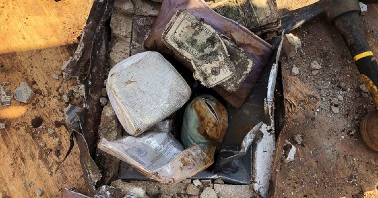 Stava facendo dei lavori in giardino, quando ha trovato un grande recipiente metallico, coperto di ruggine, sepolto dietro i cespugli. Si trattava in realtà di una cassaforte, e quando l'ha aperta, ha trovato un tesoro di circa 18.000 euro. Gioielli, diamanti e pile di banconote riempivano il contenitore da tempo dimenticato.