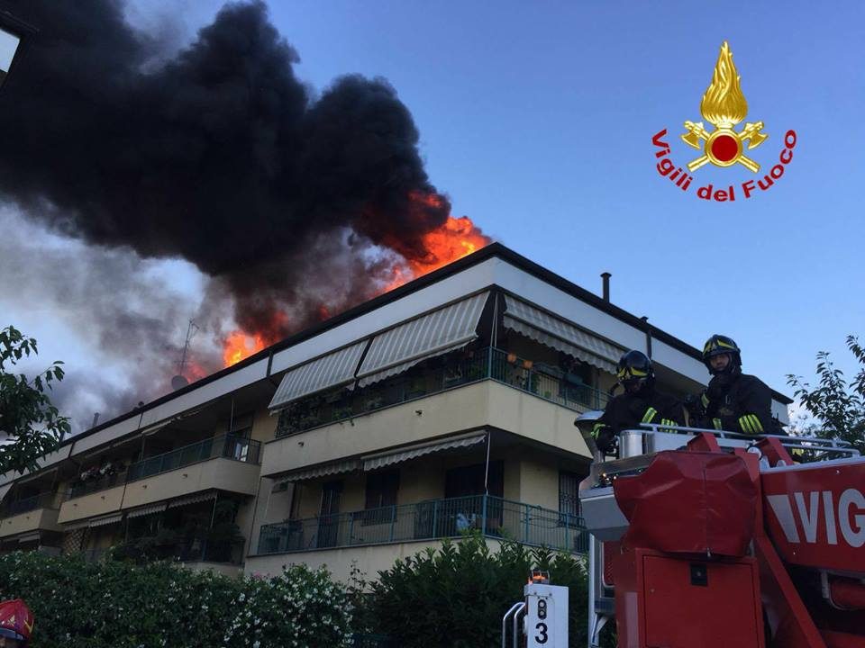 Fiamme divampate in un palazzo di Arese, Comune in provincia di Milano. L'incendio ha riguardato 5 appartamenti. Evacuati i residenti e non ci sarebbe nessun ferito. Completamente distrutto il tetto dell'edificio. Il rogo probabilmente è stato causato da un corto circuito.