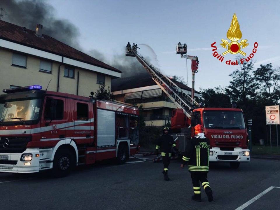 Incendio in un palazzo ad Arese: a fuoco il tetto e 5 appartamenti