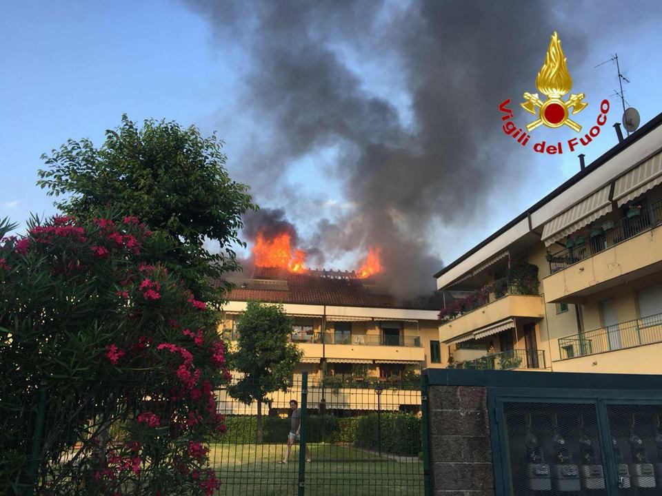Fiamme divampate in un palazzo di Arese, Comune in provincia di Milano. L'incendio ha riguardato 5 appartamenti. Evacuati i residenti e non ci sarebbe nessun ferito. Completamente distrutto il tetto dell'edificio. Il rogo probabilmente è stato causato da un corto circuito.
