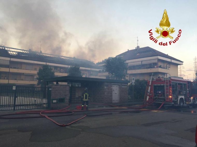 Incendio in un palazzo ad Arese: a fuoco il tetto e 5 appartamenti
