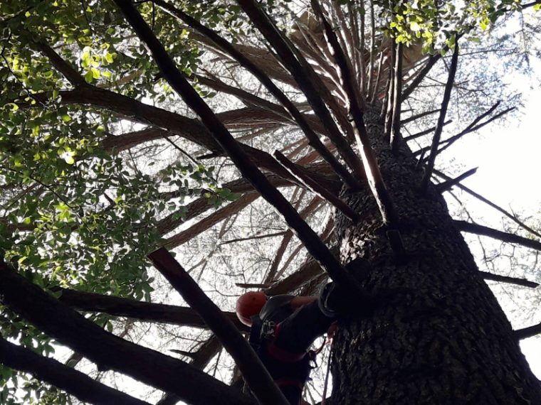 Una casetta sugli alberi nel cuore di Villa Ada, Roma. I tecnici dell'Osservatorio Sherwood sono saliti fino in cima per verificare. Sono stati trovati indumenti e scorte d'acqua, segno che qualcuno ci vive o ci ha vissuto.