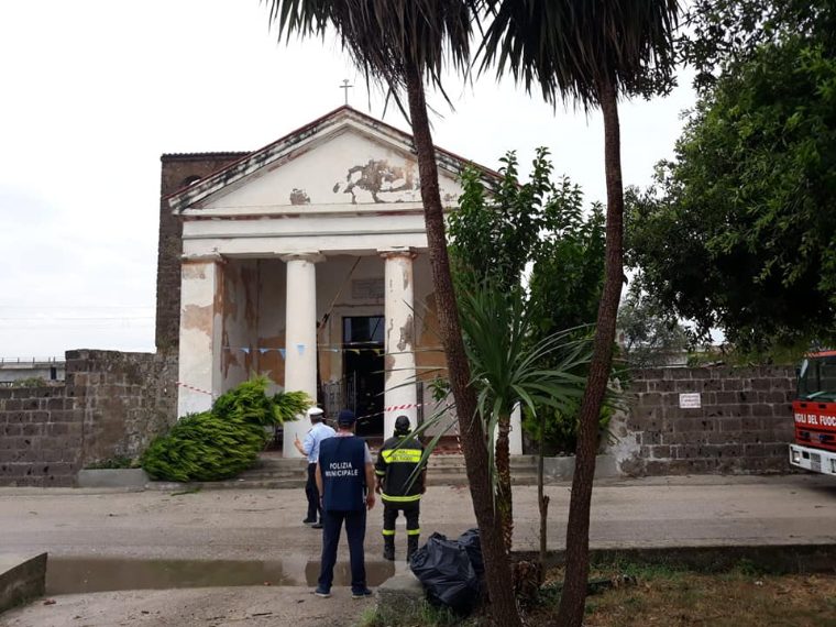 Tromba d'aria a Marcianise, Caserta. Sradicati diversi alberi e danneggiato il tempietto di Santa Veneranda, uno dei luoghi simbolo del paese. Le foto sono state pubblicate su Facebook dal sindaco del paese Antonello Velardi.