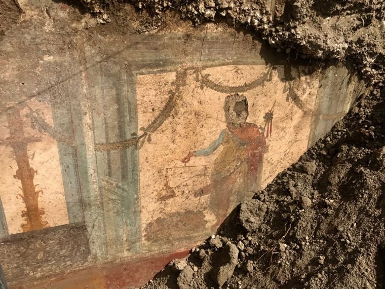 Affresco di Priapo scoperto a Pompei: le immagini della divinità che pesa il fallo su una bilancia