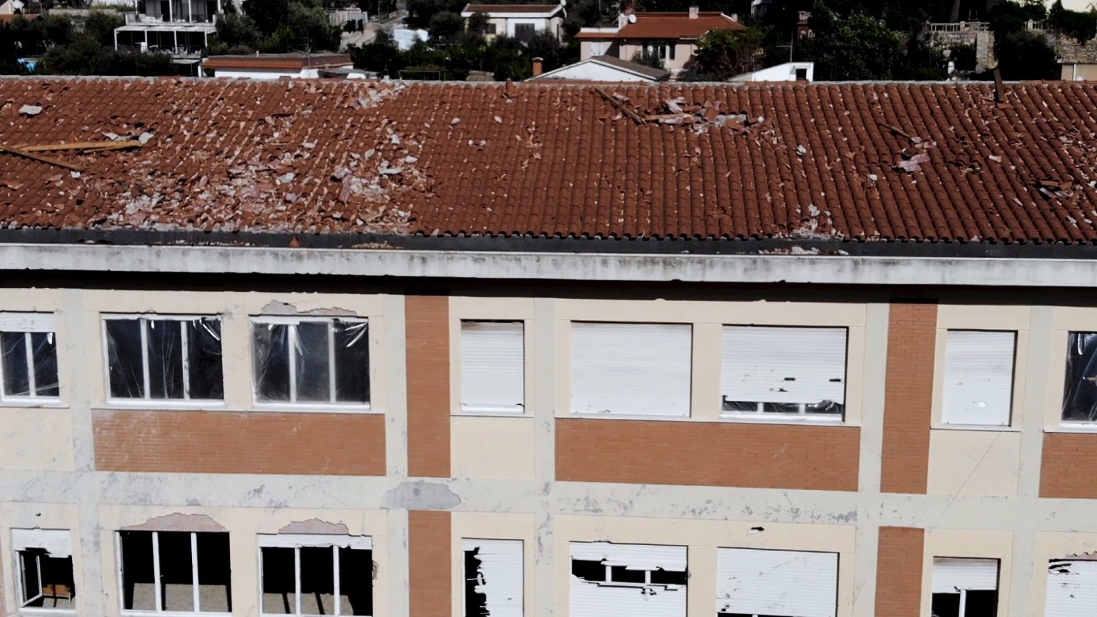 Tetto di un palazzo si abbatte su un asilo di Terracina in seguito alla fortissima tromba d'aria che ieri ha colpito il comune in provincia di Latina.