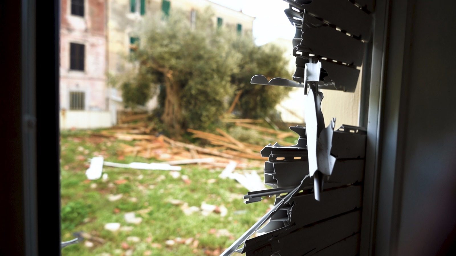 Tetto di un palazzo si abbatte su un asilo di Terracina in seguito alla fortissima tromba d'aria che ieri ha colpito il comune in provincia di Latina.