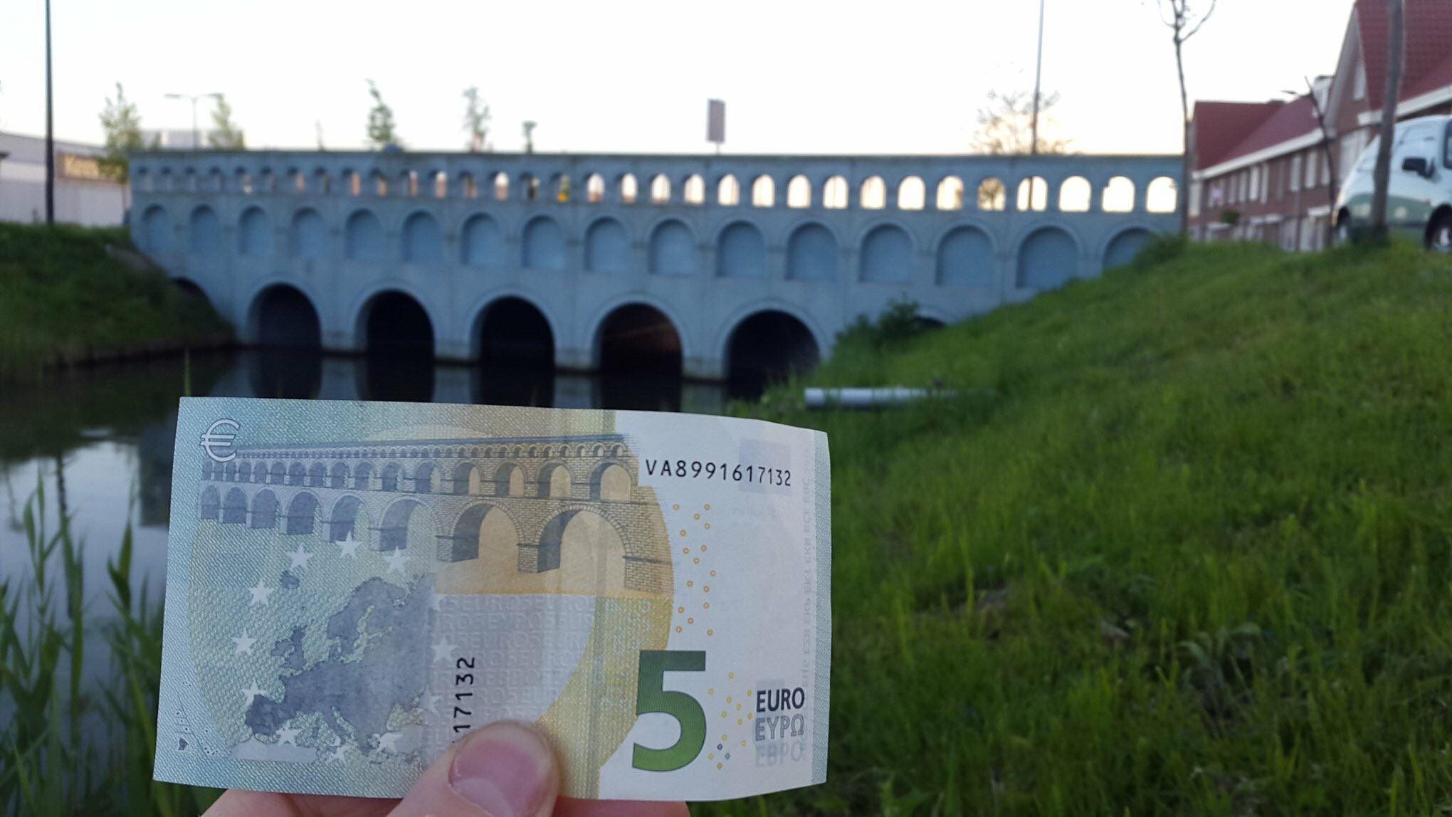 Esistono davvero i ponti, le facciate, i portali realizzati sulle banconote dell'euro? Quando sono state introdotte, no. Vennero realizzati dal grafico Robert Kalina, ogni ponte stava a simboleggiare un periodo culturale della storia europea, l’antichità classica, il periodo romano, il Gotico, il Rinascimento, il barocco e infine l’epoca contemporanea. Robin Stam ha deciso di dare vita a tali ponti realizzando dei progetti per costruirli nella realtà, precisamente nella periferia di Spijkenisse, nell’Olanda del Sud, non lontano da Rotterdam. Il progetto residenziale De Bruggen Van Europa è stato proposto in un'area che aveva bisogno di collegamenti tra i vari quartieri separati da infiniti canali.