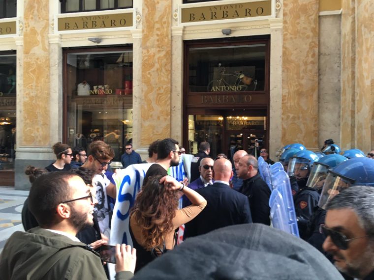 Matteo Salvini a Napoli, manifestanti bloccati in Galleria Umberto
