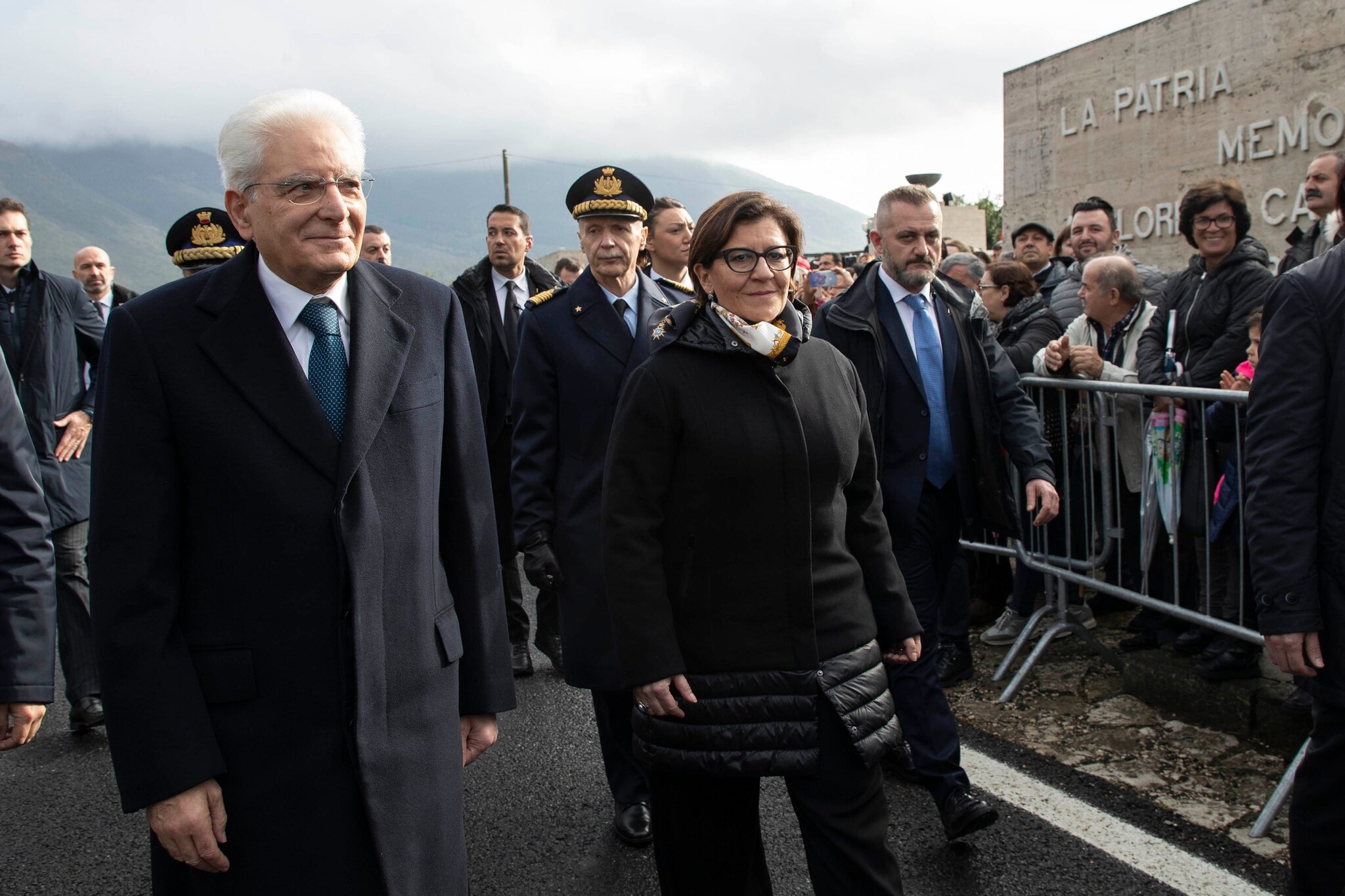 Il presidente Sergio Mattarella alla cerimonia del 75esimo anniversario della battaglia di Monte Lungo, combattuta nel corso della Seconda Guerra Mondiale tra l'Italia, da poco al fianco degli Alleati, e la Germania.