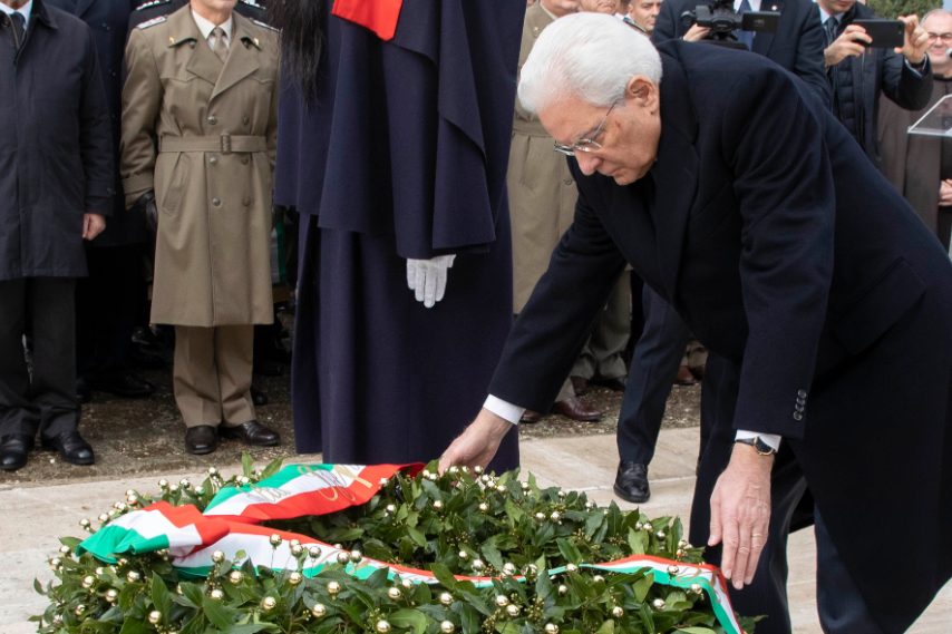 Sergio Mattarella alla cerimonia per il 75° anniversario della battaglia di Monte Lungo