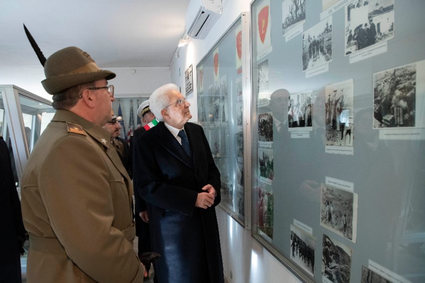 Il presidente Sergio Mattarella alla cerimonia del 75esimo anniversario della battaglia di Monte Lungo, combattuta nel corso della Seconda Guerra Mondiale tra l'Italia, da poco al fianco degli Alleati, e la Germania.
