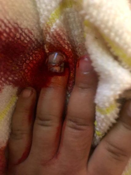 Kaylah Bennett, bimba inglese di 14 mesi, è stata protagonista di un brutto incidente casalingo venerdì sera. "La punta del suo ditino era letteralmente appesa, si vedevano le ossa. Non ho mai visto così tanto sangue in vita mia, non smetteva di sanguinare", è il racconto della madre.