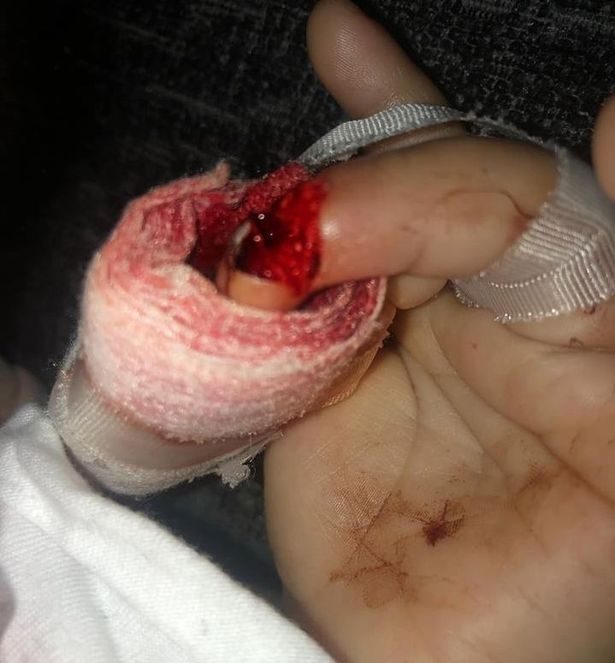 Kaylah Bennett, bimba inglese di 14 mesi, è stata protagonista di un brutto incidente casalingo venerdì sera. "La punta del suo ditino era letteralmente appesa, si vedevano le ossa. Non ho mai visto così tanto sangue in vita mia, non smetteva di sanguinare", è il racconto della madre.