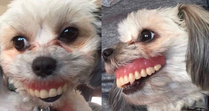 La cagnolina ha rubato le protesi dentarie del padrone: le divertenti immagini