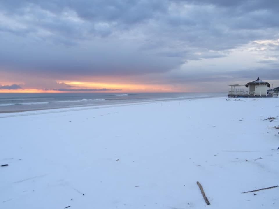 La spiaggia di Sabaudia s'imbianca: lo spettacolo della grandine