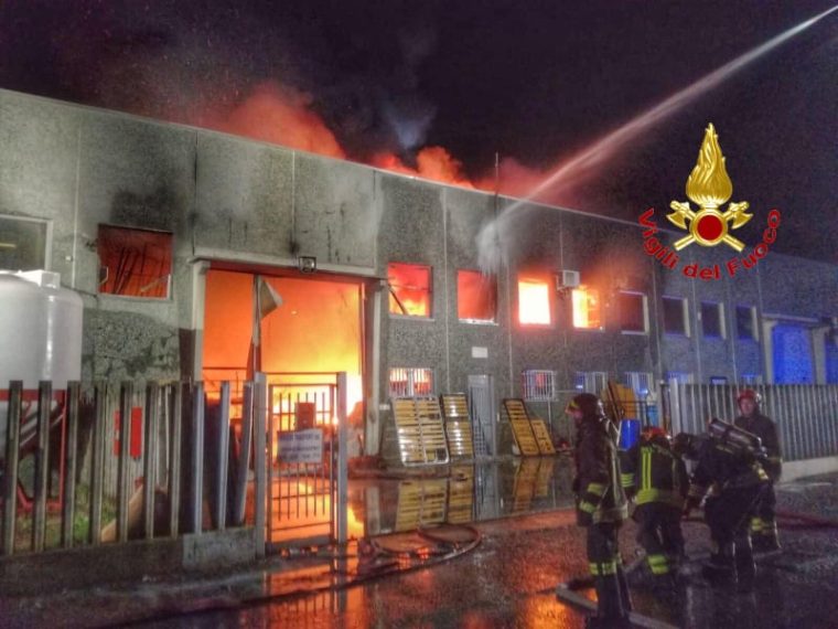 Vignate, incendio distrugge un capannone industriale: colonna di fumo visibile a chilometri
