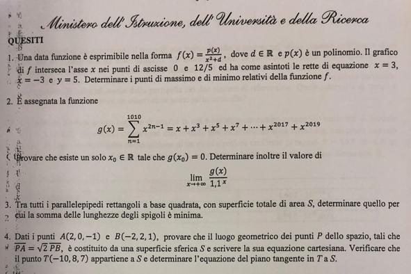 Seconda prova Maturità scientifico: tutte le foto di problemi e quesiti