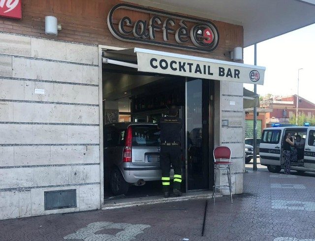 Roma, auto sfonda la vetrata e finisce nel bar Caffè Meet: le incredibili immagini