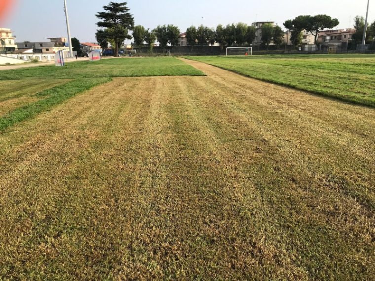 Casoria, l'erba dello stadio San Mauro già ingiallita dopo le Universiadi
