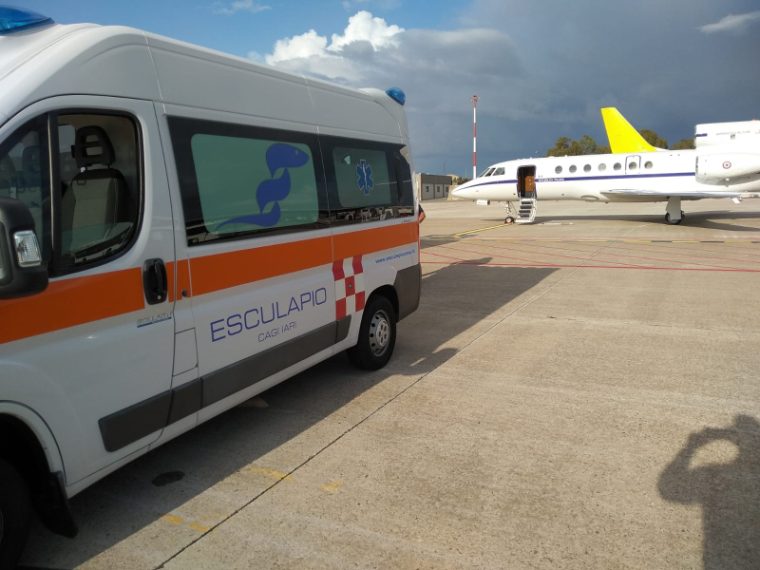 La bimba trasportata da Cagliari a Venezia da un aereo Falcon 50 dell'Aeronautica Militare per essere trasferita all'Azienda Ospedaliera di Padova