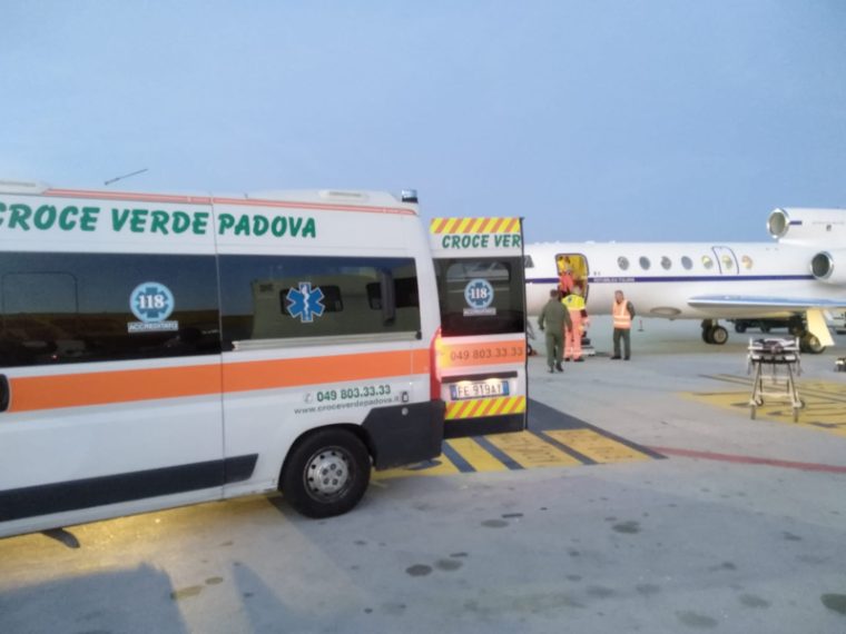 La bimba trasportata da Cagliari a Venezia da un aereo Falcon 50 dell'Aeronautica Militare per essere trasferita all'Azienda Ospedaliera di Padova