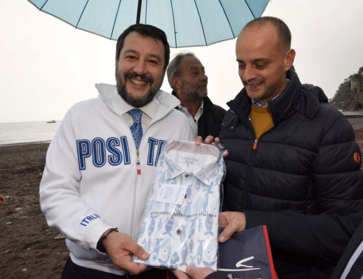 Matteo Salvini in penisola sorrentina: il leader della Lega è arrivato per ufficializzare il passaggio del sindaco di Sorrento, Giuseppe Cuomo, con il Carroccio.