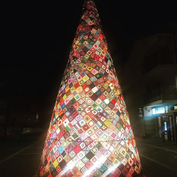 Parma, è stato acceso l'albero di Natale realizzato con duemila mattonelle all'uncinetto. La struttura in ferro è stata rivestita da oltre duemila mattonelle lavorate con lana all'uncinetto dalle donne del paese, dagli alunni della scuola primaria Padre Lino e della scuola d’infanzia Terramare. Ad apporre materialmente le mattonelle sono stati trenta volontari del paese. L’albero, che ha ricevuto la benedizione di don Paul Isaac, è alto sei metri e ha una base di tre metri. Un modo per valorizzare la manualità e il lavoro di gruppo.