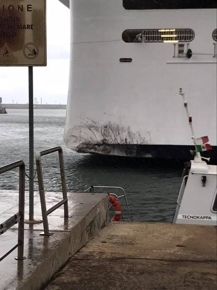 Nave da crociera impatta conto la banchina in fase di attracco