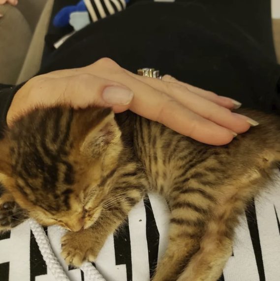 È minuscolo ma tenerissimo: il gattino salvato ama stare sulla spalla del suo nuovo padrone