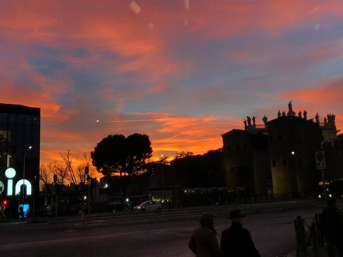 Un tramonto spettacolare oggi a Roma: i social si riempiono di scatti