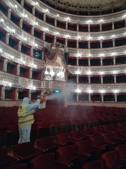 Terminata domenica sera la sanificazione delle scuole, il Comune di Napoli passa a quella dei locali pubblici. Si parte dal Teatro San Carlo, sanificato stamattina dagli addetti NapoliServizi. Saranno disinfettati anche gli altri uffici pubblici comunali, a cominciare dalle sedi delle Municipalità.
