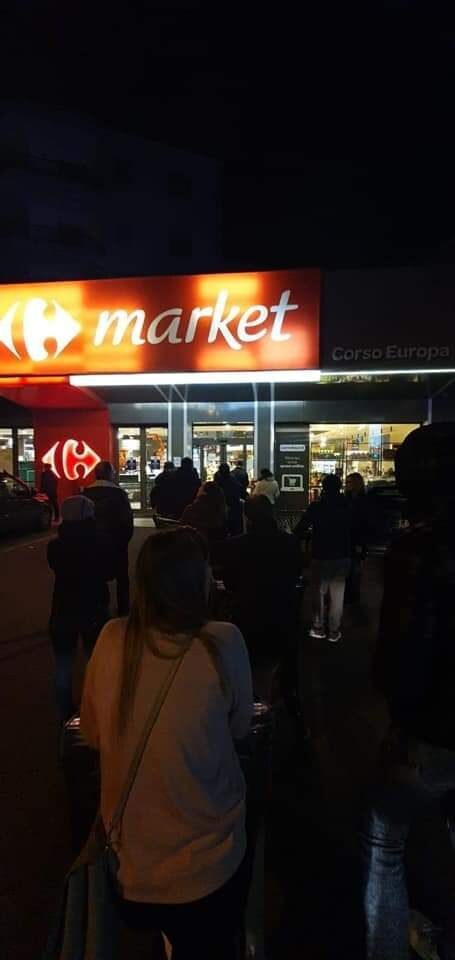 Centinaia di persone hanno affollato di notte i supermercati h24 dopo la decisione del governo di estendere la zona rossa per il contenimento del coronavirus a tutta Italia.