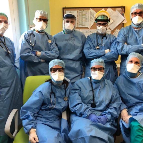 "Nei momenti più difficili le famiglie si stringono più forte. A Bergamo da settimane ormai medici, infermieri e operatori sanitari di tutte le specialità del Policlinico San Marco e del Policlinico San Pietro stanno lottando fianco a fianco con tutte le loro forze contro il Covid19 #NoiNonMolliamo #BergamoNonMolla"